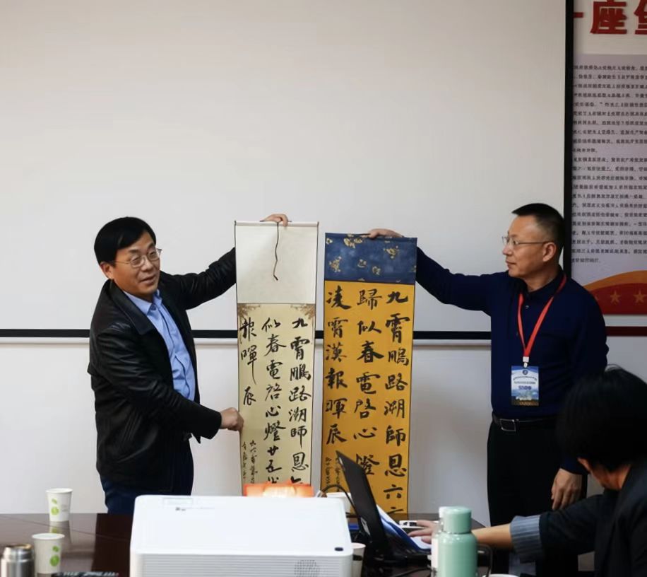 交流接近尾声时,校友代表向学校和学院分别赠送了精心准备的书法作品,以笔墨寄情,表达对母校培养的感恩之情与对未来的美好祝愿。