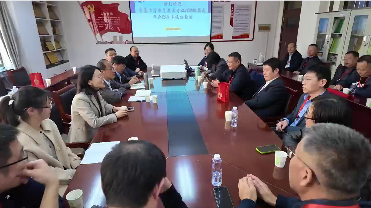 下午1时30分,师生座谈交流会在博远楼411会议室举行。学院党委书记李敏,副书记薛希洪,电气技术1996级辅导员、现数学与统计学院党委副书记魏小平,学院校友会副会长、青岛鼎鼎安全技术有限公司总经理徐东以及在校生代表等齐聚一堂。1996级校友代表、电气技术2班班长丁敏主持了座谈会。在校生学生代表2022级姜文同学作了热情洋溢的发言,向师哥师姐们汇报了自己在学校学院的成长经历。特邀校友、87级电气技术专业徐东,原辅导员魏小平在发言中深情回顾了校友们在校期间的点点滴滴,表达了对校友们的深深思念和美好祝福。院党委书记李敏在发言中对校友们的返校表示了热烈的祝贺,对校友们一直以来对学院的支持和关注表达了真诚的谢意;他向校友们介绍了学院近年来的发展成果与未来规划,并提出三点期望,一是加强校友之间的交流,搭建平台赋能校友发展;二是加强校友与母校的交流,汇聚资源助力母校建设。三是加强校友与地方的交流,凝聚合力共担时代使命。